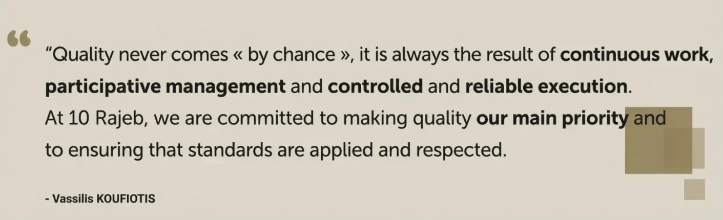 Constantly striving for customer satisfaction, 10 RAJEB has placed excellence at the heart of its strategy. Throughout the manufacturing process, quality is an absolute priority.